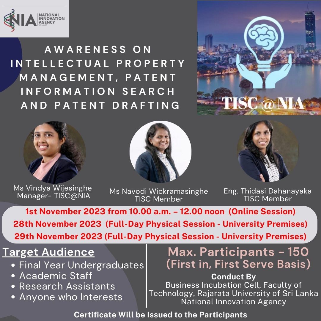 The intention of WIPO is to open 22 TISC centers throughout Sri Lanka. The TISC@NIA is the successor TISC @COSTI which was launched on 18th December 2014 under the assistance of the National Intellectual Property office (NIPO) targeting to facilitate the Intellectual property eco-system of the country.